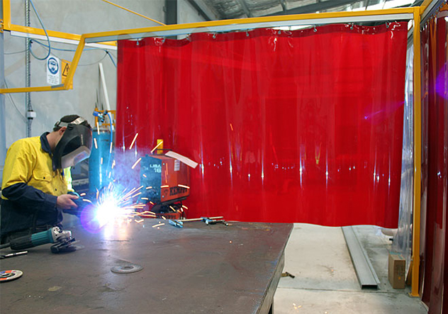 PVC Kaynak Perdeleri'nin, en önemli özelliği alev yürümeme özelliği mevcuttur. Her kırmızı perde kaynak perdesi değildir. İçsel değer olarak ve dayanımları açısından özel bir malzemedir.